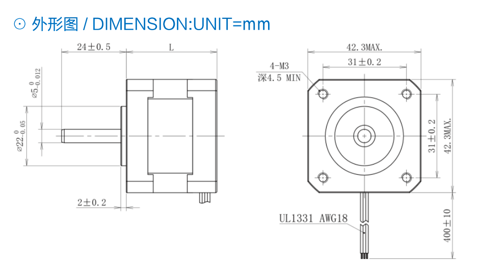 三相步進電機-42外形圖